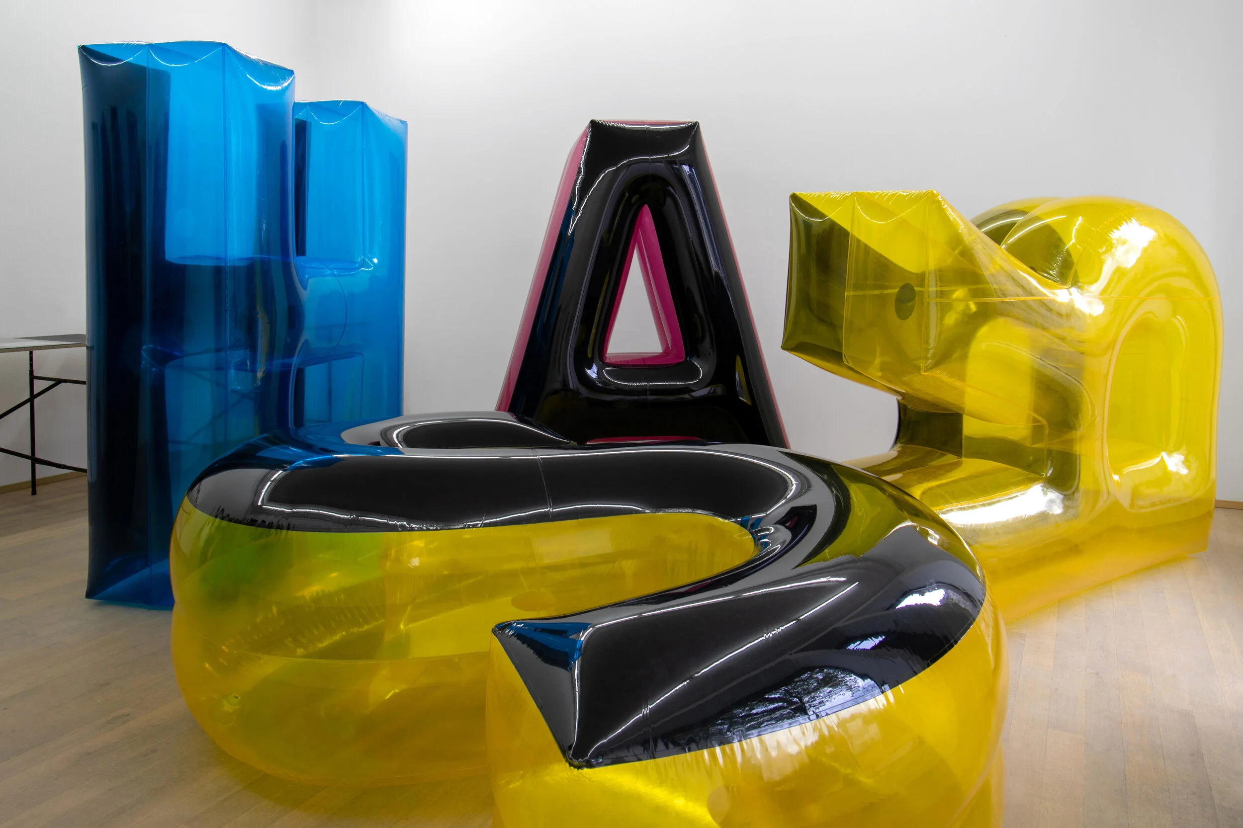 En choisissant d’articuler leurs artefacts en toile renforcée à la manière d’un château gonflable, les artistes évoquent d’abord la fonction historique du château de Sanem comme orphelinat. Matrice visuelle du projet, la matière textile noire à partir de laquelle sont fabriquées leurs sculptures vient servir un vocabulaire formel basé sur la réduction et la déformation. Le fait que leurs créations aient besoin d’être alimentées en permanence renvoie de manière plus générale à la nécessité de cultiver sans cesse l’histoire pour qu’elle reste vivante. De même, le caractère provisoire de leurs œuvres fait écho à la matérialité fragile des reliques léguées par le passé, dont la préservation mobilise des efforts considérables.
